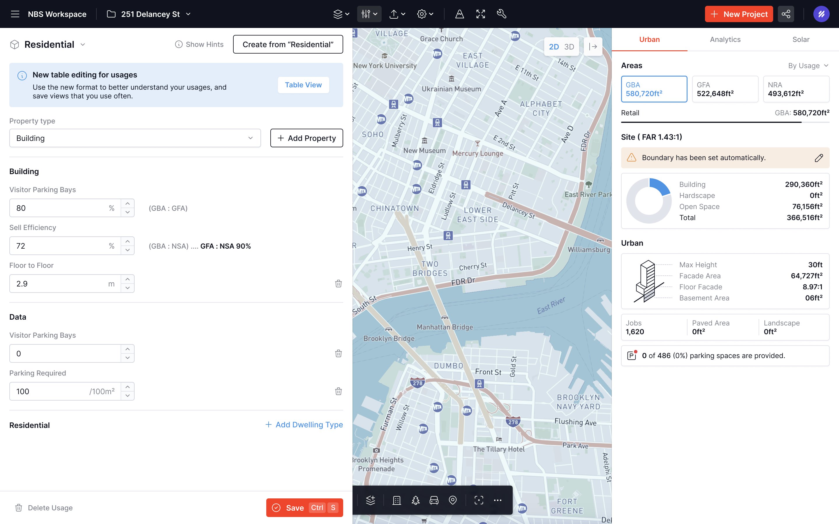 A user interface for urban planning showing properties and their details alongside a map view.