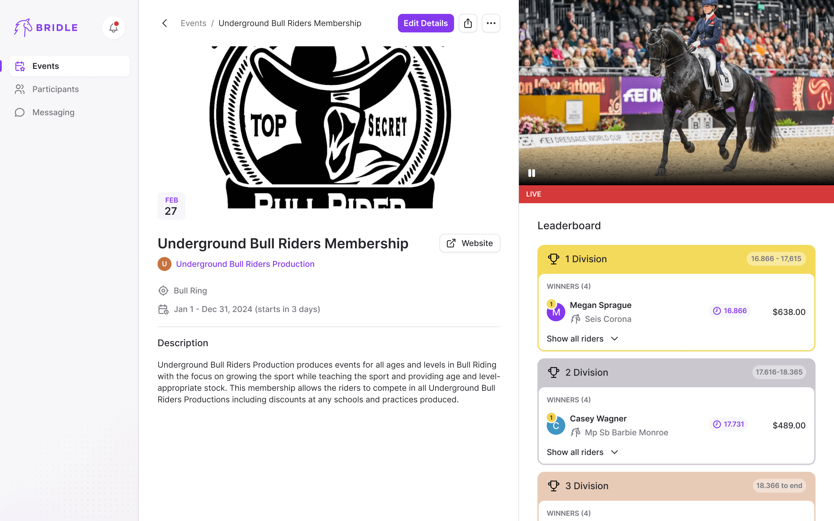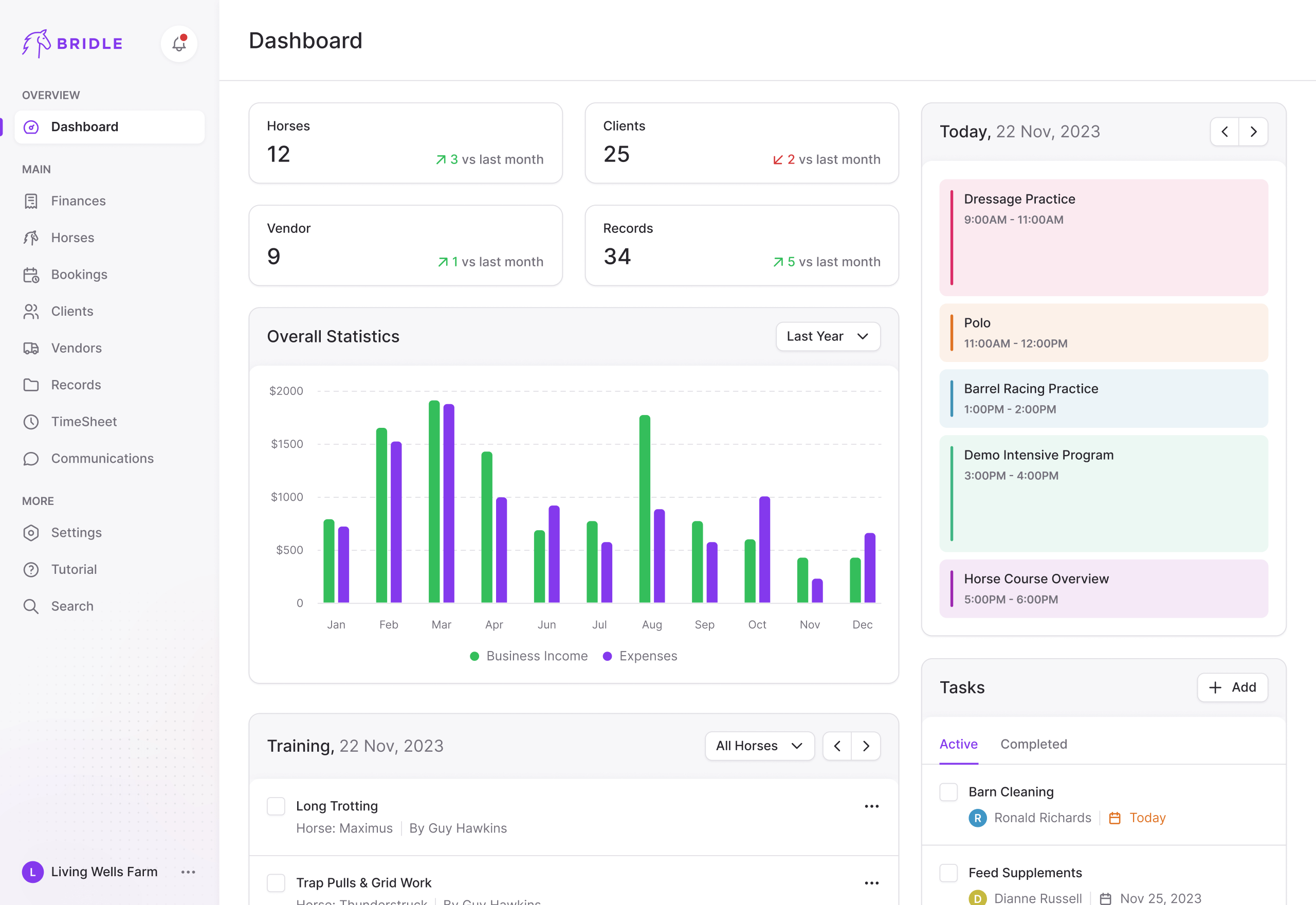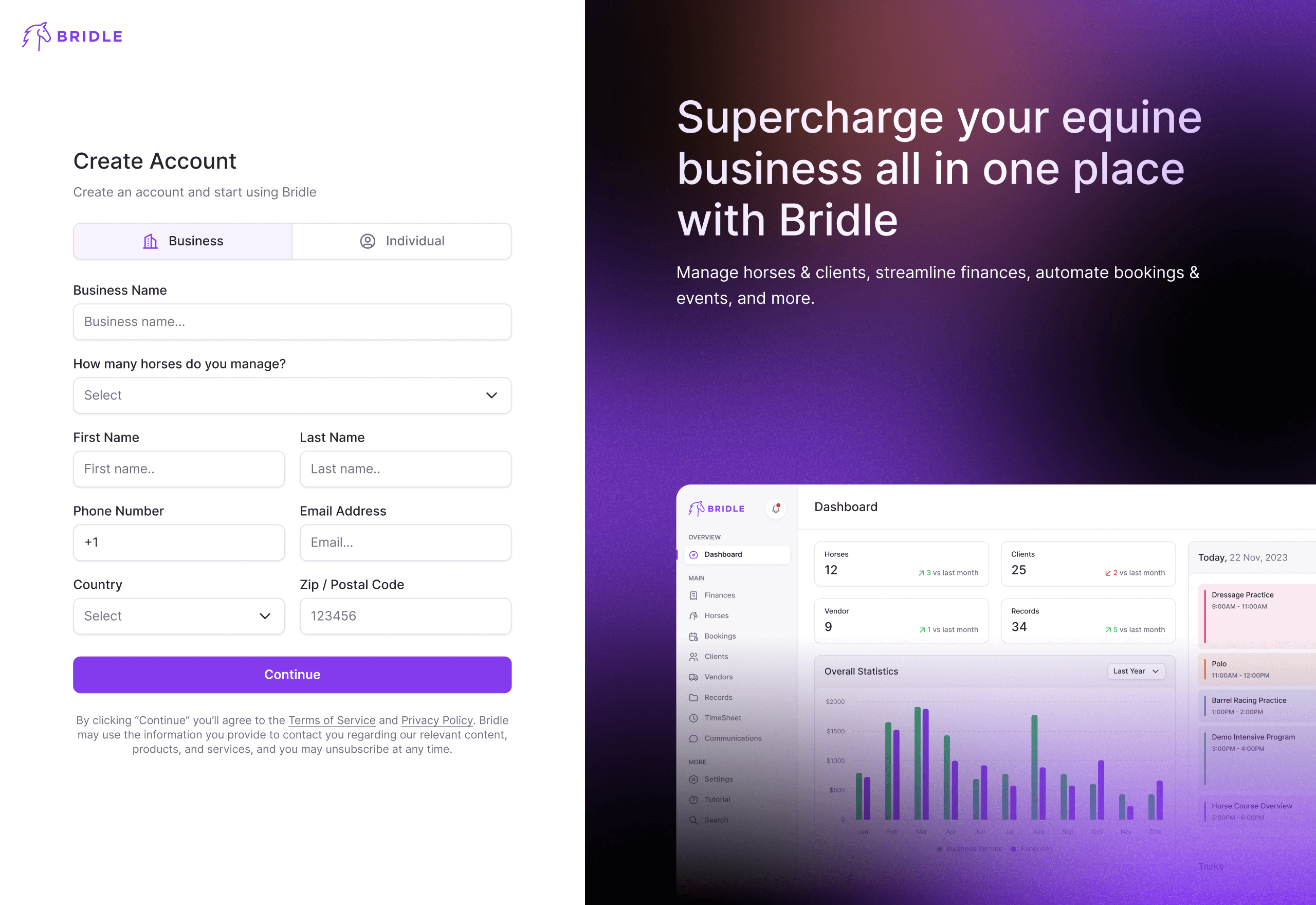 Bridle creates software for the equestrian industry, particularly barns and event managers. It's essentially a highly specialized CRM, covering the typical things like customers and vendors, but also vet appointments, health records, competition entries and much more.