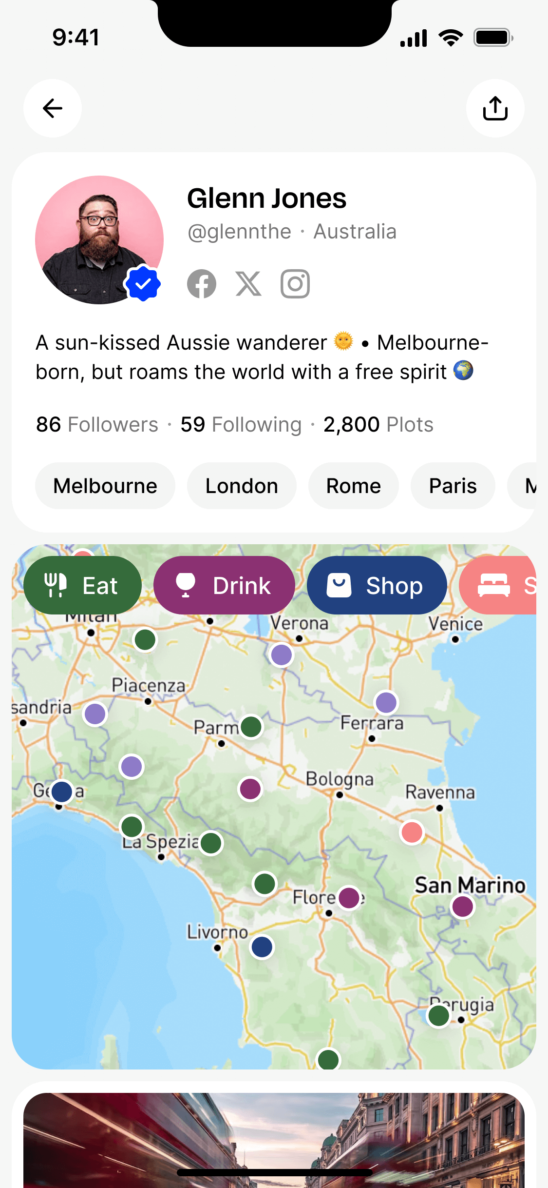 PLOT is a conceptual social app that allows users to discover and share great places. The idea was to allow creators in particular to plot things on their map, and share their favorite places with others.